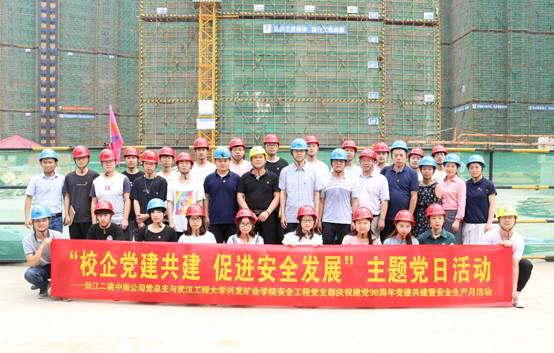 安全工程党支部与浙江二建中南公司党总支在浙江二建武汉名都花园项目部组织开展了“校企党建共建,促进安全发展”主题党日活动。浙江二建中南公司机关支部书记、总经理助理沈江红、名都花园项目支部书记张明星、名都花园项目副经理李保明、成人ai