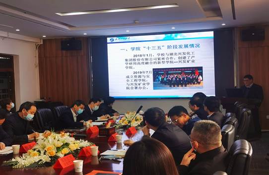会上,院长池汝安教授代表学院从学科建设、人才培养、科学研究、师资队伍建设、国际化发展、实验室建设、与兴发集团合作等七个方面汇报了学院“十三五”建设取得的成绩,并针对“标杆学院”的调研对比分析了我们的不足,查找了原因,并提出了学院“十四五”规划阶段发展的主要任务、办学思路和具体措施。