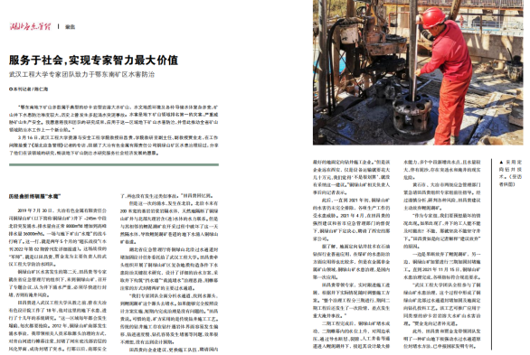 我院田昌贵教授、贾金龙副教授在采访中回顾了大冶有色金属有限责任公司铜绿山矿区水患治理经过,分享了他们在该领域的研究,畅谈地下矿山防治水研究服务社会经济发展的愿景。