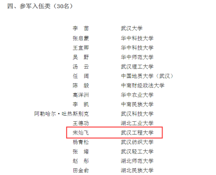 矿物加工工程专业学生宋灿飞入选应征入伍类大学生就业创业人物。
