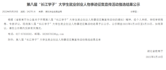 近日,从湖北省教育厅获悉,湖北省第八届“长江学子”大学生就业创业人物事迹征集活动评选结果揭晓,成人ai