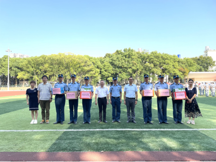 院长何东升、党委副书记李佳在武昌校区体育场看望并慰问军训团五营全体教官。