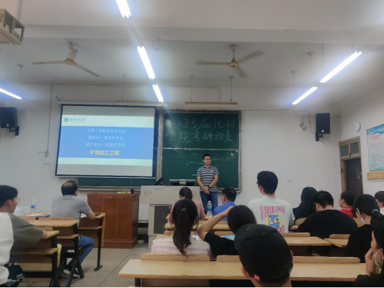 邮电与信息工程学院的化工与材料工程学院院长向丽介绍了本学院的建设发展历程及本专业毕业生培养重点、学习情况、就业情况及历年考研情况。我院张臻悦教授针对该专业发展的需要,结合我院研究生专业实际,简要地介绍了我院2023年度的研究生招生计划,重点介绍了矿物加工专业中的矿物加工理论技术、矿物材料制备与应用、二次资源综合利用技术、矿物生物和化学处理技术等六个专业方向,欢迎与会的学生报考我院研究生。路漫漫老师结合自己的求学历程,解答了同学们在考研过程中的一些对于专业及个人发展的困惑,鼓励同学们报考研究生,努力学习提升自己的专业水平。