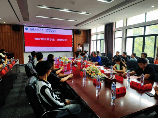 2024届毕业生“爱矿就业奖学金”颁奖仪式在武昌校区领创大楼419会议室举行,学院为29名与矿山企业达成就业意向的毕业生发放“爱矿就业奖学金”。学院领导班子成员、教研室主任、教师代表、全体获奖毕业生参加了颁奖仪式,仪式由学院党委副书记李佳主持。