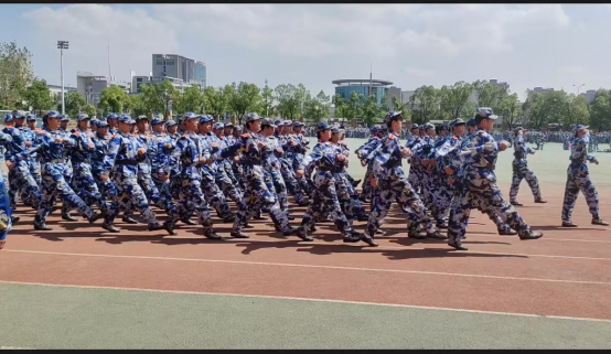 军训期间,同学们每天早早地来到训练场,以饱满的精神状态投入到紧张的训练中。站军姿、踢正步、练队列,每一个动作都力求标准,每一次口号都喊得响亮。尽管汗水湿透了衣衫,双脚磨出了水泡,但同学们始终咬牙坚持,没有一人退缩。在教官的严格指导下,同学们的军事素养得到了极大的提升,队伍的行进整齐划一,步伐坚定有力,展现出了良好的精神风貌。