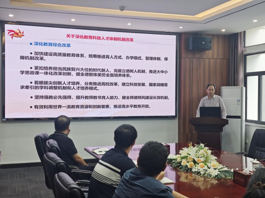 江本武以“学习领会党的二十届三中全会精神,贯彻改革意识,高质量完成学院重点工作任务”为题讲授了党课。他结合学院的实际工作对党的二十届三中全会精神的核心要点进行了详细阐述。他强调,全体党员干部要深刻领会全会精神实质,将其与自身工作紧密结合起来,不断提升工作能力和水平,积极主动地参与到学校和学院的各项改革和发展工作中,以钉钉子精神抓好工作落实,共同推动单位各项事业不断取得新的突破和进展。(审稿 江本武)