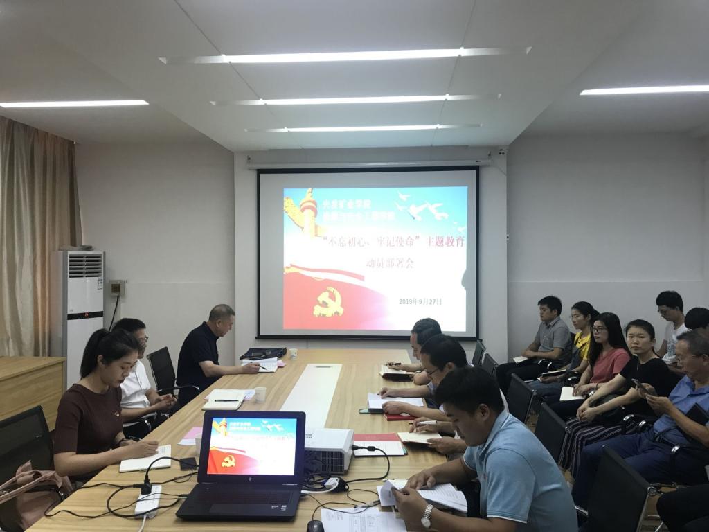 江本武在动员部署会上汇报了学院主题教育部署情况,明确了学院主题教育活动的具体任务和要求,并对开展好主题教育提出四点意见。一、充分认识开展主题教育的重大意义,持续深化党的创新理论武装,抓实学习内容,切实把思想和行动统一到中央的决策部署上来。二、牢牢把握目标任务,围绕五个目标,扎实推进基层支部主题教育,锤炼党员干部忠诚干净担当的政治品格。三、认真贯彻总要求,落实重点措施,确保主题教育取得最好成效。四、加强组织领导,落实主体责任,压实领导责任,扎实推进主题教育。
