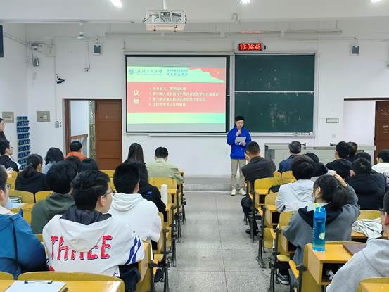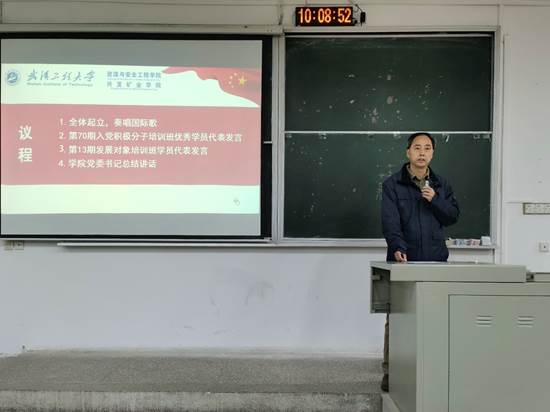 党委书记江本武,党委副书记李佳,及各年级辅导员出席了此次开班典礼,会议由班主任老师黄橙主持。
