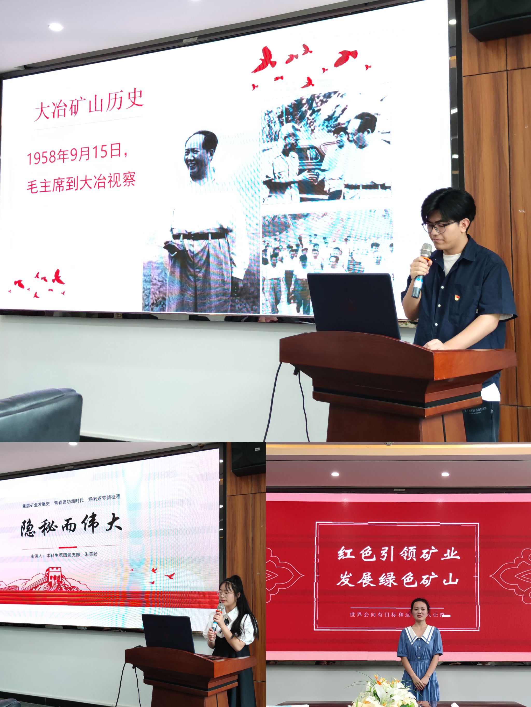 来自学生党支部选派的7名选手紧扣“重温矿业发展史 青春建功新时代 扬帆筑梦新征程”主题,围绕“中国矿业发展史”、“武钢发展史”、“新时代矿山劳模精神”等话题,通过党员讲劳模故事、讲矿业发展历史,以图文并茂的形式展示了一场有声有色的精彩演讲,广大矿业学子将小我融入大我,立志为建设社会主义现代化强国贡献青春力量。