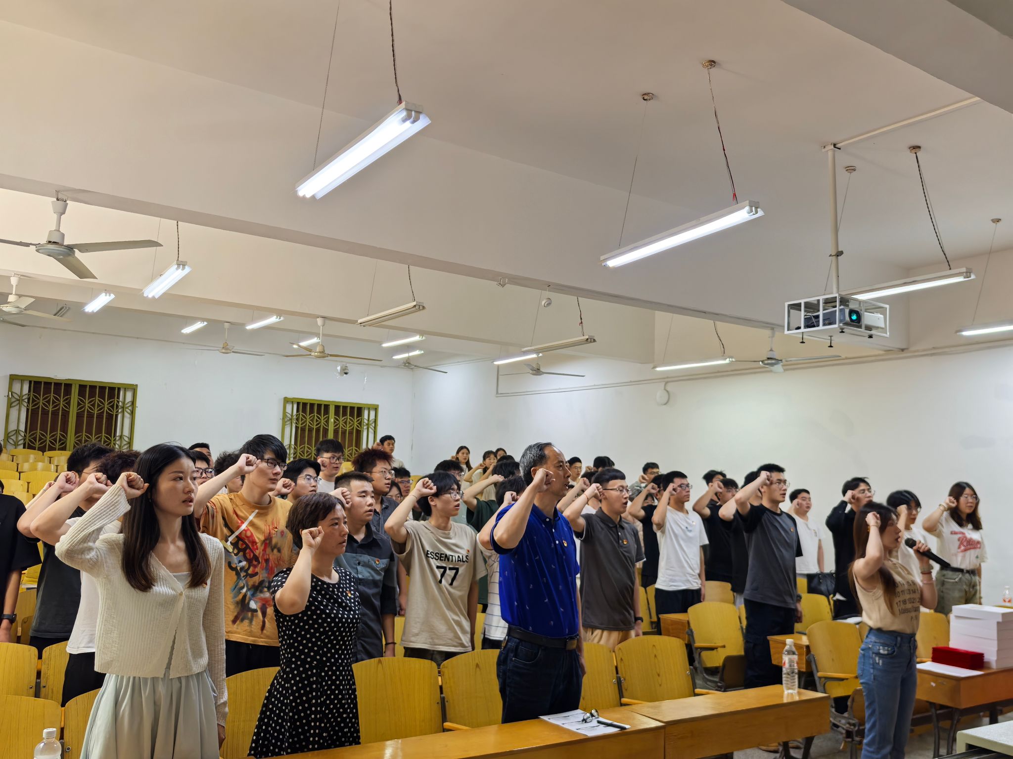 重温一次入党誓词。学院组织全体党员重温入党誓词,勉励党员同志提高党性修养,不忘初心,进一步坚定理想信念,牢记誓词,恪守誓言,做合格的共产党员。