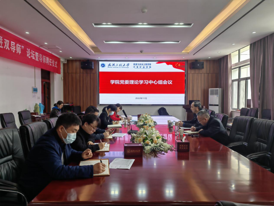 党委在419会议室召开理论学习中心组会议专题学习贯彻党的二十大精神,学院领导班子成员、党委委员参加学习,会议由学院党委书记江本武主持。