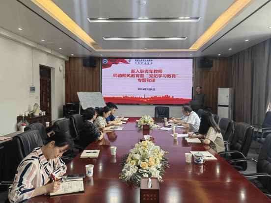 5月8日,学院党委书记江本武为新入职教师讲授党纪学习教育专题党课,对青年党员教师参加党纪学习教育提出了具体要求。带领青年教师解读领会《新时代高校教师职业行为十项准则》、学习师德师风教育警示案例。江本武强调,青年党员教师要认真开展党纪学习教育,加强个人自学,强化自我监督,深刻认识教师队伍素质的第一标准是师德师风,要进一步坚定理想信念,知纪守纪,争做立德树人的表率。