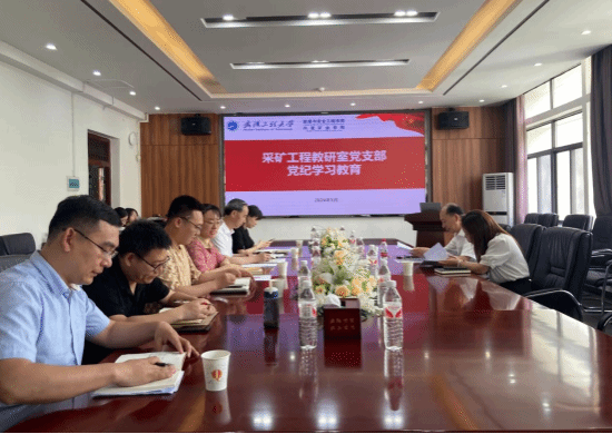 采矿工程教研室党支部在领创大楼419会议室开展党纪学习教育。校党委常委、副校长喻发全以普通党员身份参加党支部活动。活动由采矿工程教研室党支部书记康钦容主持,党支部全体党员参加。