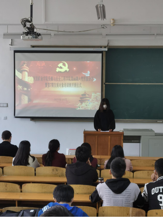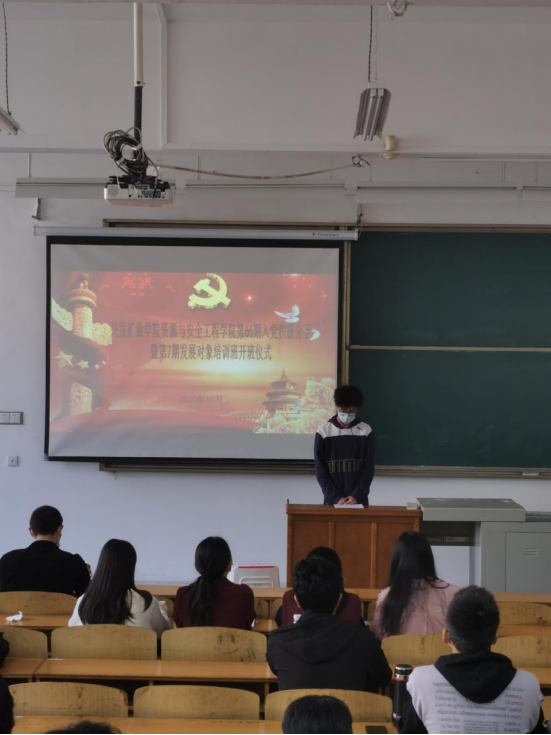 资源安全与工程学院第66期入党积极分子培训班暨第7期发展对象培训班开班典礼在W2302教室举行。学院党委书记、分党校校长江本武,学院党委副书记、分党校副校长李佳、学院党务干事杜娟出席了开班典礼,88名党校新学员参加。开班典礼由本期党校培训班班主任孙奕主持。