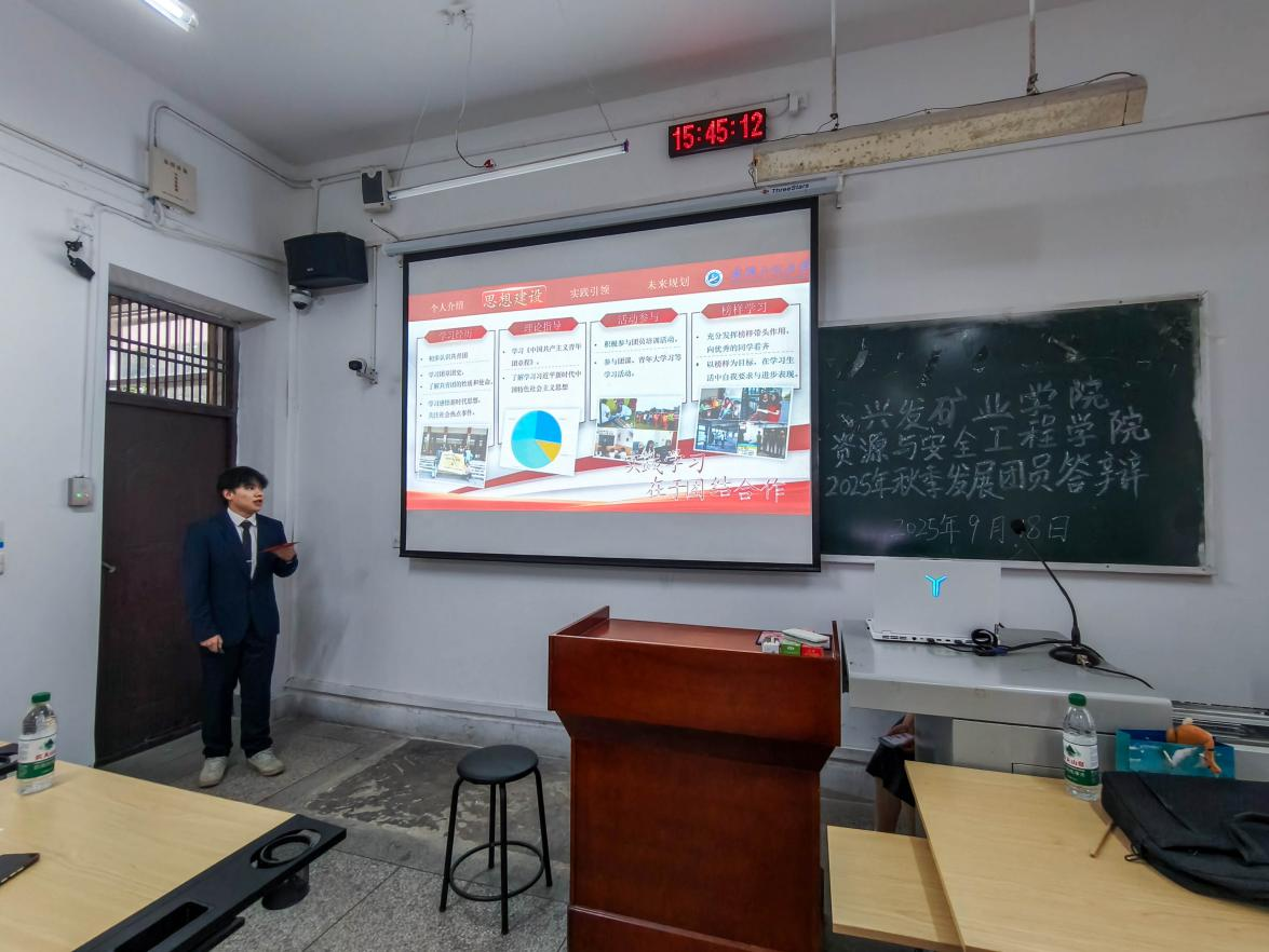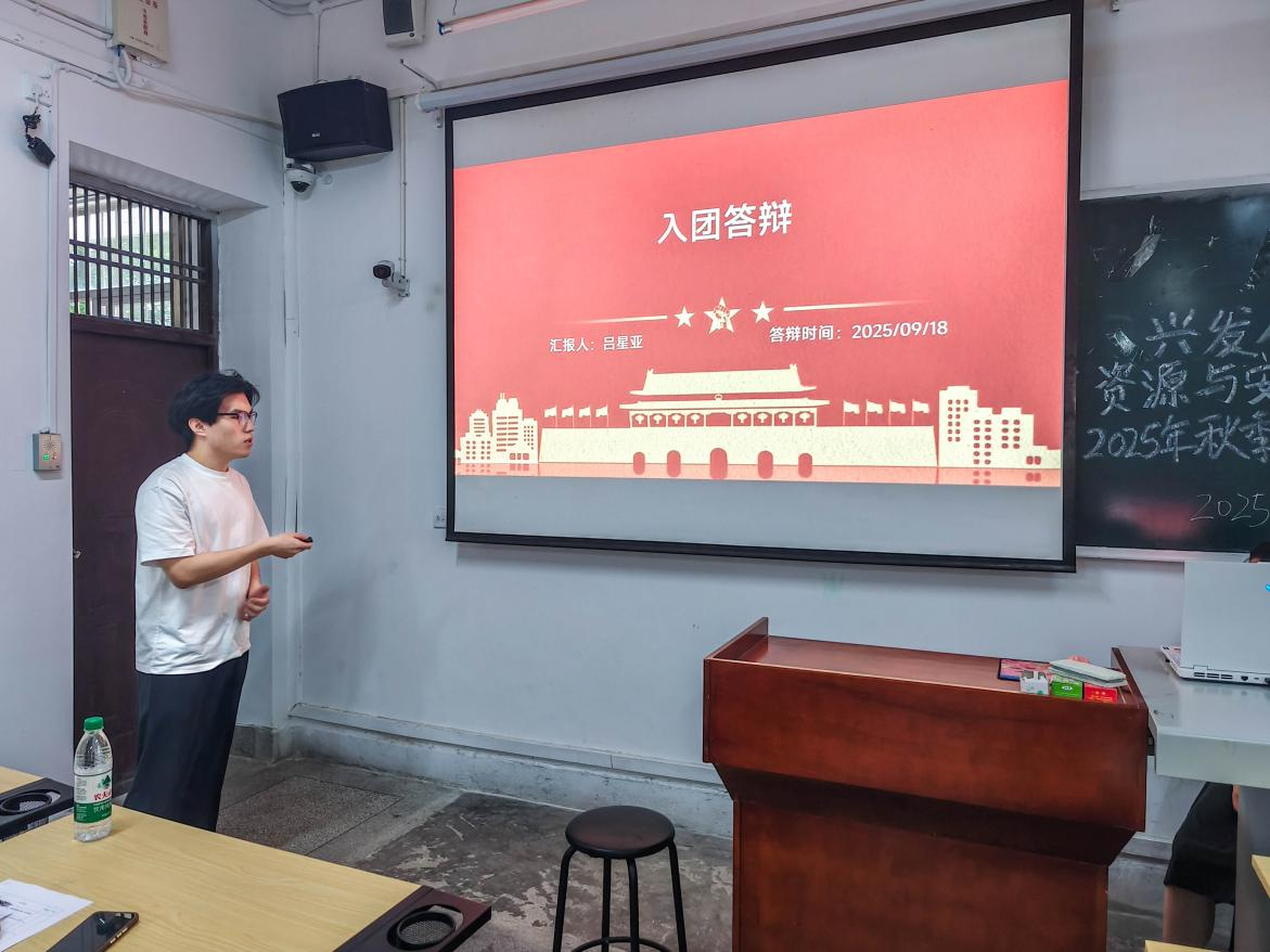 在武昌校区w2107教室召开了2025年秋季团员发展答辩活动,学院团委指导老师耿胡锐、学生主席团成员熊家蔚、2022、2023和2024级部分本科生参与了此次活动。
