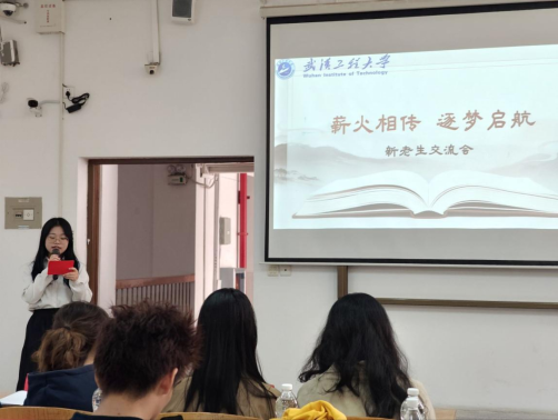 团委暨学生会学术调研部在武昌校区二号教学楼W2301教室组织开展“薪火相传,逐梦启航”新老生交流会活动,新生辅导员王祥祥老师、学生团委副书记王艺樨、主席团成员以及部分优秀学生代表出席了本次活动。