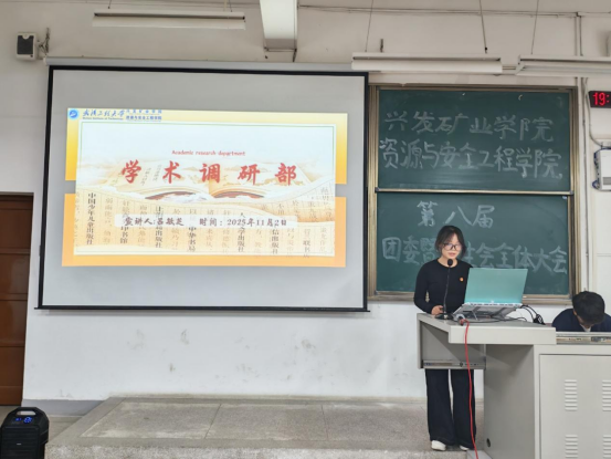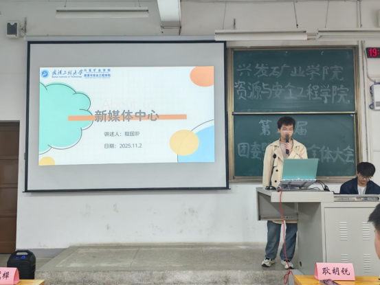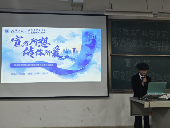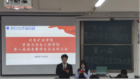 第八届团委暨学生会全体大会在武昌校区W2102教室隆重召开。学院团委指导老师耿胡锐、2025级辅导员王祥祥、学生团委副主席王艺樨、主席团成员高雅思,第八届团委暨学生会全体成员参加了此次活动。