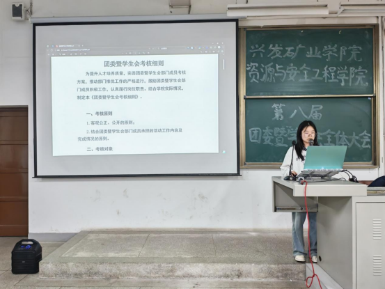 会上,办公室主要负责人石涵潇针对团委暨学生会考核细则进行了专项讲解。她从考核原则、考核对象、评分标准等方面进行全面解读,明确了对学生干部的工作要求与行为规范。