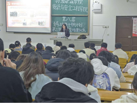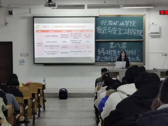在授课环节中,讲师朱美龄聚焦“党与中国矿业发展”主题,系统梳理了在党的领导下中国矿业从落后到领先、从粗放走向绿色的发展历程,生动阐释了矿业领域党员先锋的模范引领作用。随后,朱美龄详细解读了党员发展的完整流程,从入党申请到预备党员转正,明确各环节的具体要求,为学子们提供了清晰的指引。
