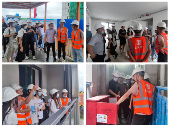 在武汉建工集团股份有限公司项目安全负责人、2015届校友范金桥的带领下,参观了项目施工地的户内户外施工安全防护措施,现场演示了各种安全设备的使用,并向在场的团队成员讲解了相关安全的原理及重要性。