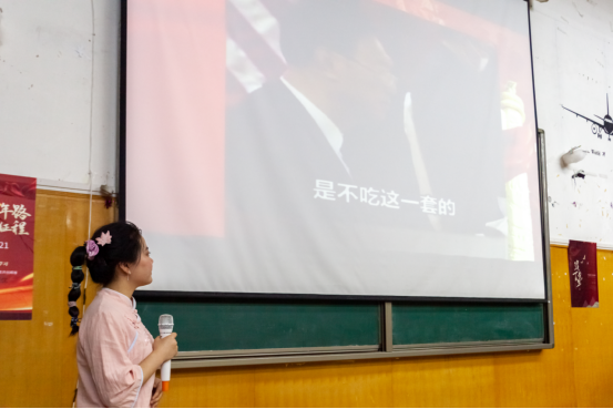 2020级安全工程一班胡波同学以演讲与视频相结合的方式讲述了中国共产党带领中国人民从站起来到富起来再到强起来的伟大历程,她呼吁全体青年学生要积极学习新思想,用习近平新时代中国特色社会主义思想来武装自己。