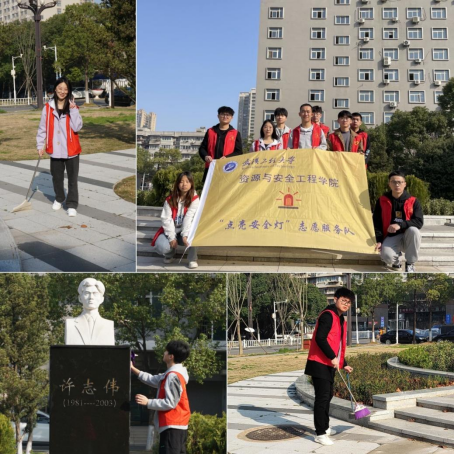 活动三:“祭英雄之魂传雷锋精神”活动,“点亮安全灯”志愿服务队的志愿者秉承着对英烈许志伟的敬畏,将许志伟广场打扫的一尘不染。活动过程中,志愿者们对前辈多了一份敬仰,也增强了自身环保意识,对建设美丽校园起到了积极的作用。