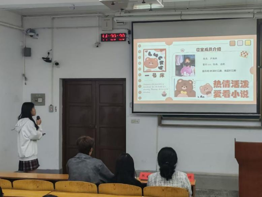 随后,各参评寝室负责人按顺序演讲,各寝室代表演讲后由评委打分。