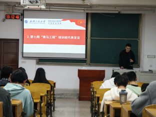 在武昌校区W2101教室举行了学院第七期“青马工程”培训班开班典礼暨第一课,典礼由学院团委指导老师耿胡锐主持。