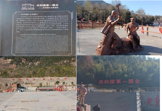 图四 中华矿业公司旧址简介照片以及早期矿业加工雕像