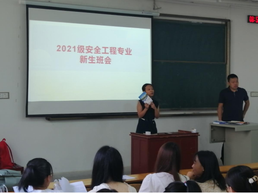 班会上,2021级安全工程1-2班班主任雷克江老师代表学院欢迎2021级新同学加入到成人ai