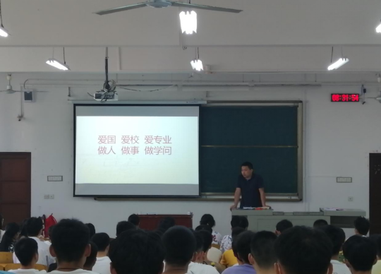 这个大家庭,并以“爱国、爱校、爱专业;做人、做事、做学问”为主题对新生进行入学教育。他希望同学们以爱国、爱校为前提,在大学四年培养做人、做事、做学问的能力,树立远大目标,坚定专业信心,做一个有情怀、有梦想、有担当的安全人。