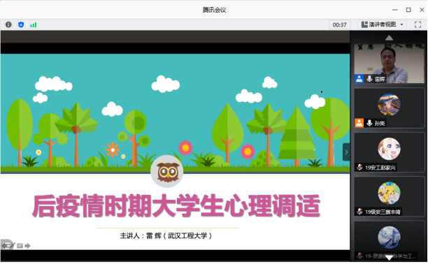 针对返校学生举办了题为“后疫情期间大学生的心理调适”的线上讲座,讲座邀请了我校心理健康教育中心的雷辉老师主讲。
