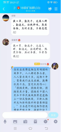 我院以“学指南,强防范”为主题,各班级积极按时开展。按照“科学防治、依法管理、分类指导、家校联防、教医联控”防控原则,学习新型冠状病毒相关基础知识、学校疫情防控工作体系构建。同学们积极响应学院号召,以班级为单位,依托微信、QQ、腾讯课堂、钉钉等软件开展主题班会,组织讨论、分享学习感悟。