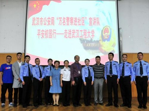 本网讯(通讯员杨文灏)9月27日晚,武汉市公安局“万名警察进社区”宣讲团在武昌校区2430教室,给我院2018级全体新生做了一场精彩宣讲。武汉市市局政治部、洪山分局领导,学校保卫处副处长马祥玉、土木工程与建设学院党委副书记郭飞、成人ai
