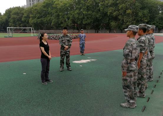 党总支书记孔海霞、土木工程与建筑学院党委副书记郭飞在辅导员杨文灏、肖豪的陪同下来到教官休息场所,看望军训四营十二连全体教官,并与承训教官亲切交谈。
