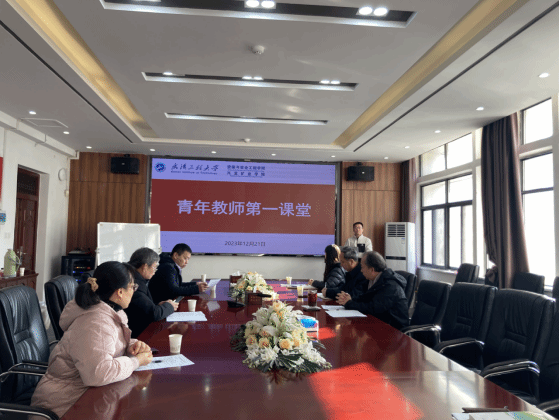 在领创大楼419会议室开展“青年教师第一课堂”活动,为即将走向讲台的青年教师秦征远和曹承阳传经把脉。学院党委书记、本科教学督导组长江本武,副院长吝曼卿,校教学督导罗惠华、李端勇,教研室主任雷克江、康钦容和部分学生等参加了会议,会议由吝曼卿主持。