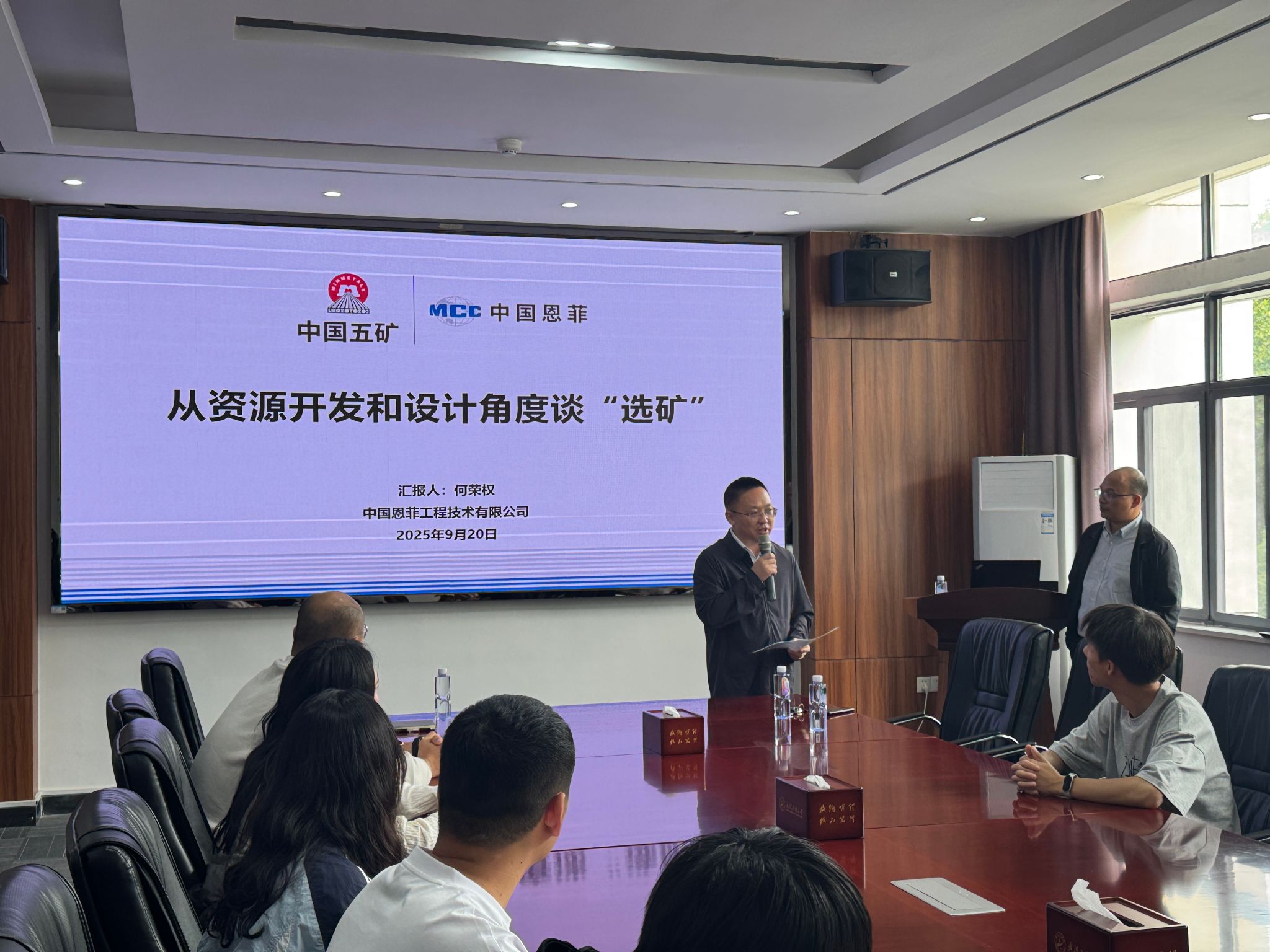 邀请,中国恩菲工程技术有限公司正高级工程师何荣权高工来校进行学术交流,并作题为《从资源开发和设计角度谈“选矿”》学术报告。报告会由学院院长何东升教授主持,学院相关学科师生代表参加了报告会。